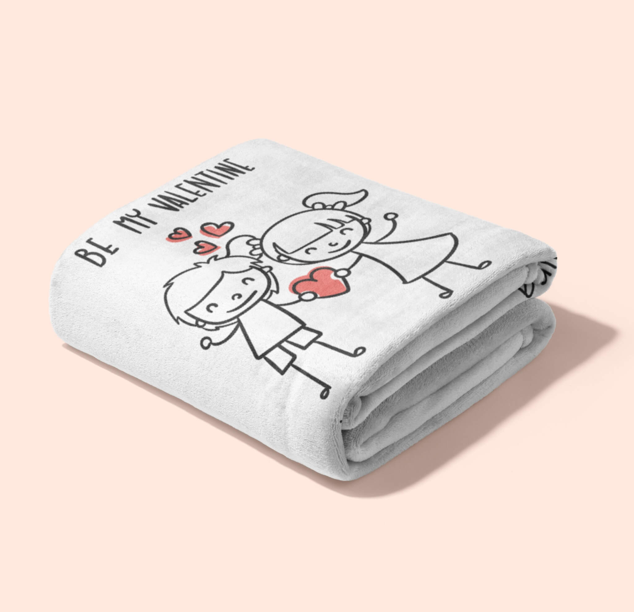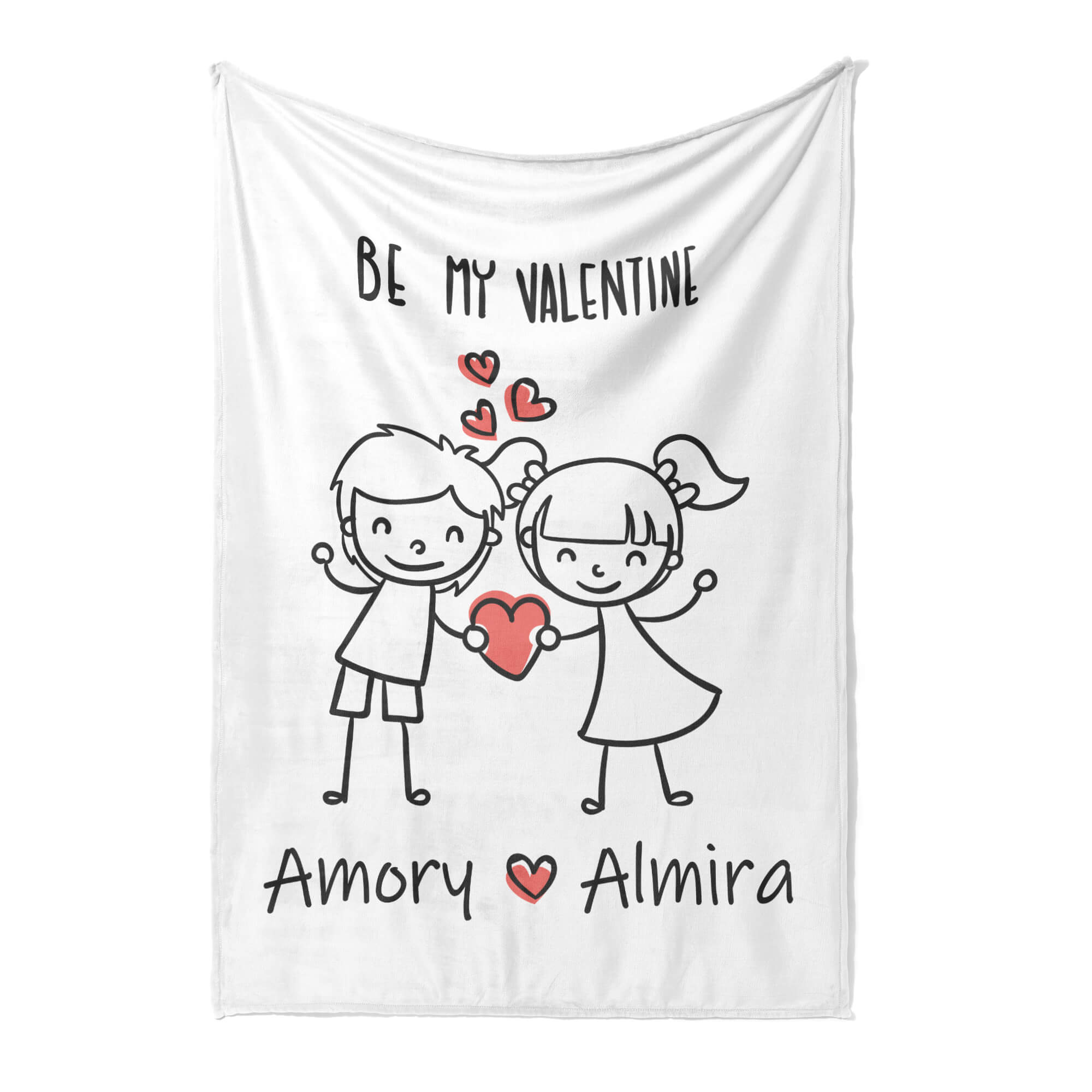 Wrap yourselves in the warmth of love with the Be Mine Valentine Custom Name Blanket. This cozy and customizable blanket features a delightful illustration of two characters holding a heart, encapsulated by smaller hearts—a visual representation of affection. The phrase “BE MY VALENTINE” adds a touch of romance to the overall design. What makes this blanket truly special is its customizability. Replace the sample names with your own and include a personalized love message, making this custom blanket a unique and sentimental keepsake. Perfect for chilly evenings or as a thoughtful gift, this Be Mine Valentine Custom Name Blanket is a tangible expression of your love and companionship.