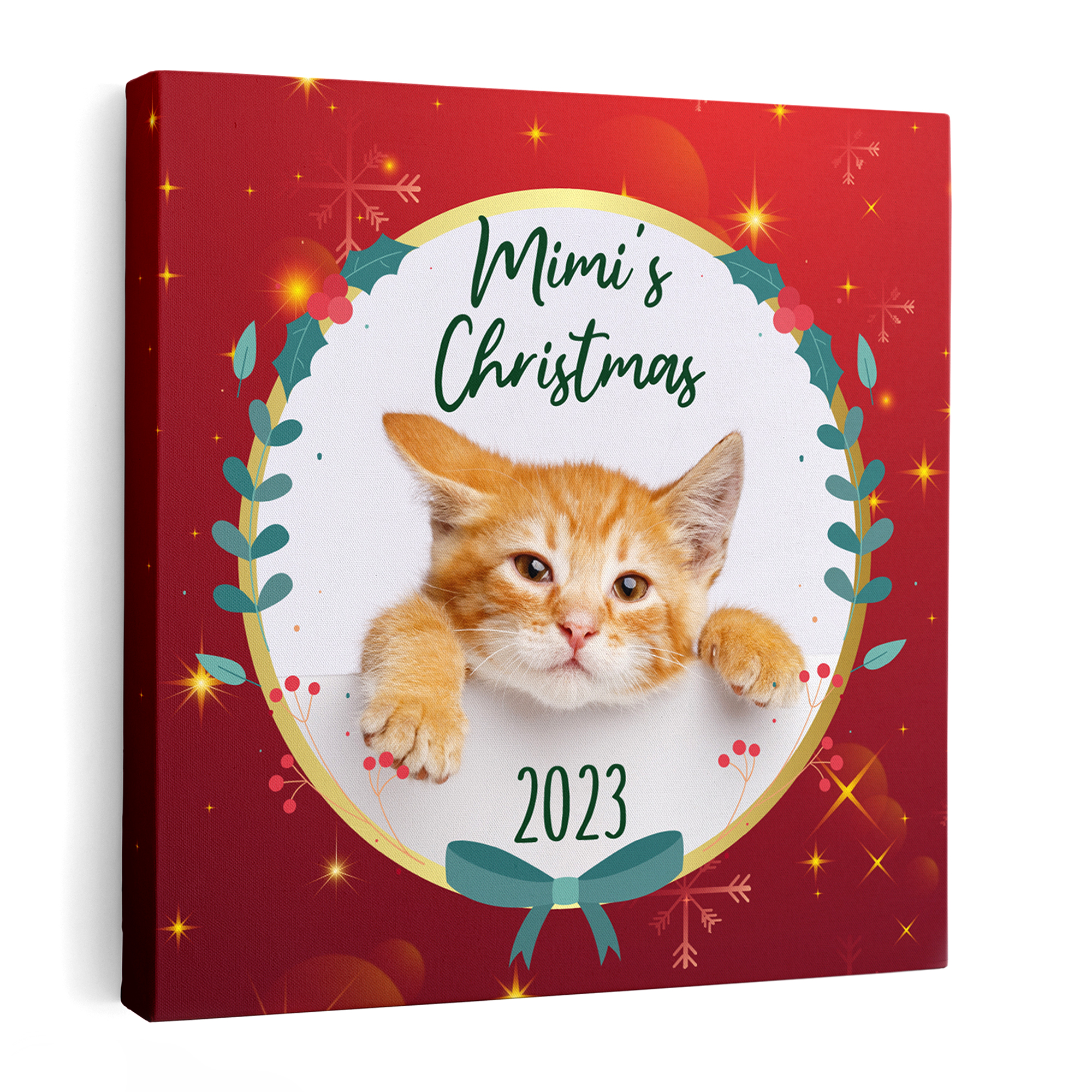 Cat Christmas Photo Custom Canvas