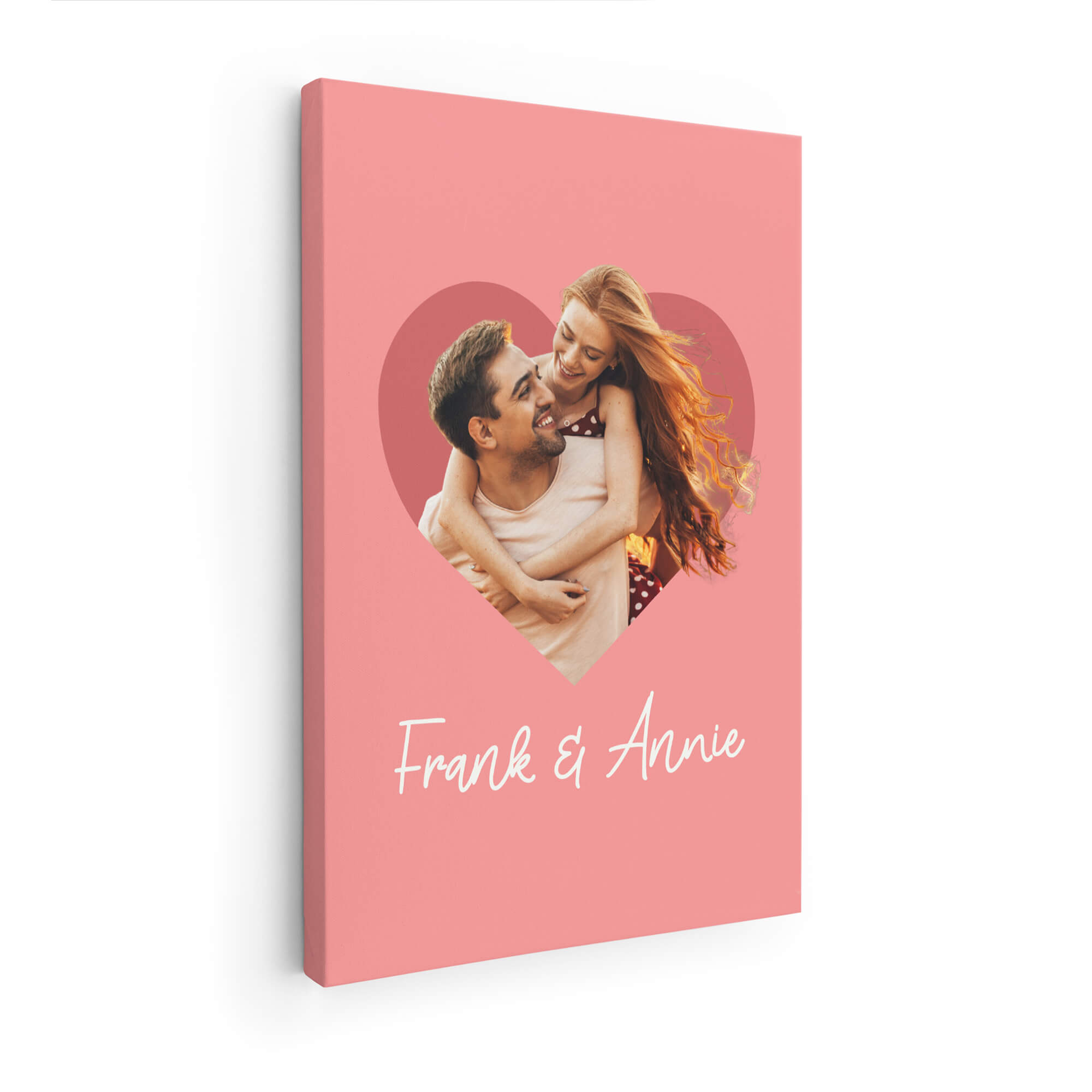 Custom Couple Name Canvas Print is a truly unique and personalized masterpiece that captures the essence of your love story. This exquisite canvas painting features a delightful pink heart frame, expertly embossed with the image of the happy couple, creating a timeless and romantic keepsake.