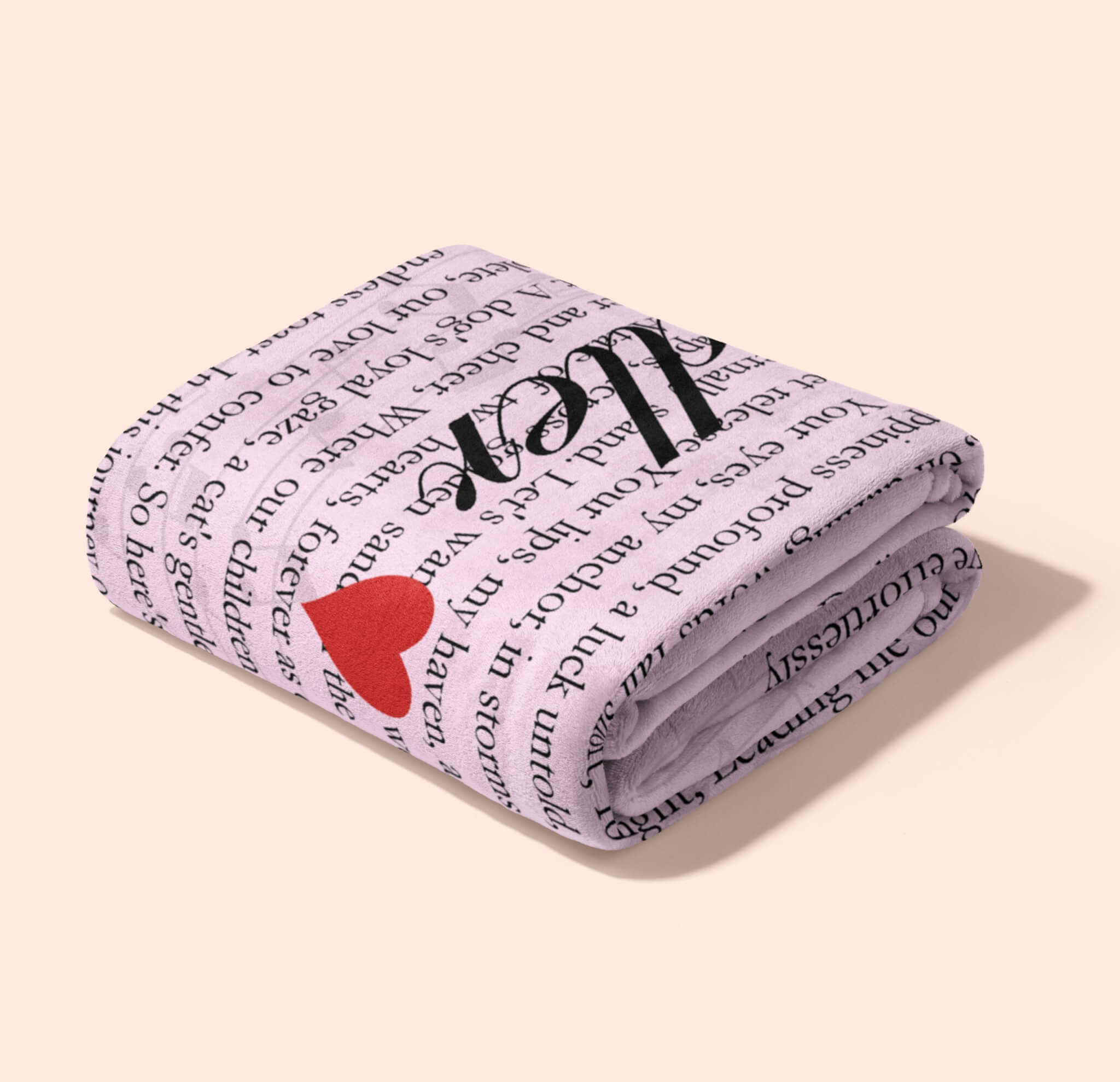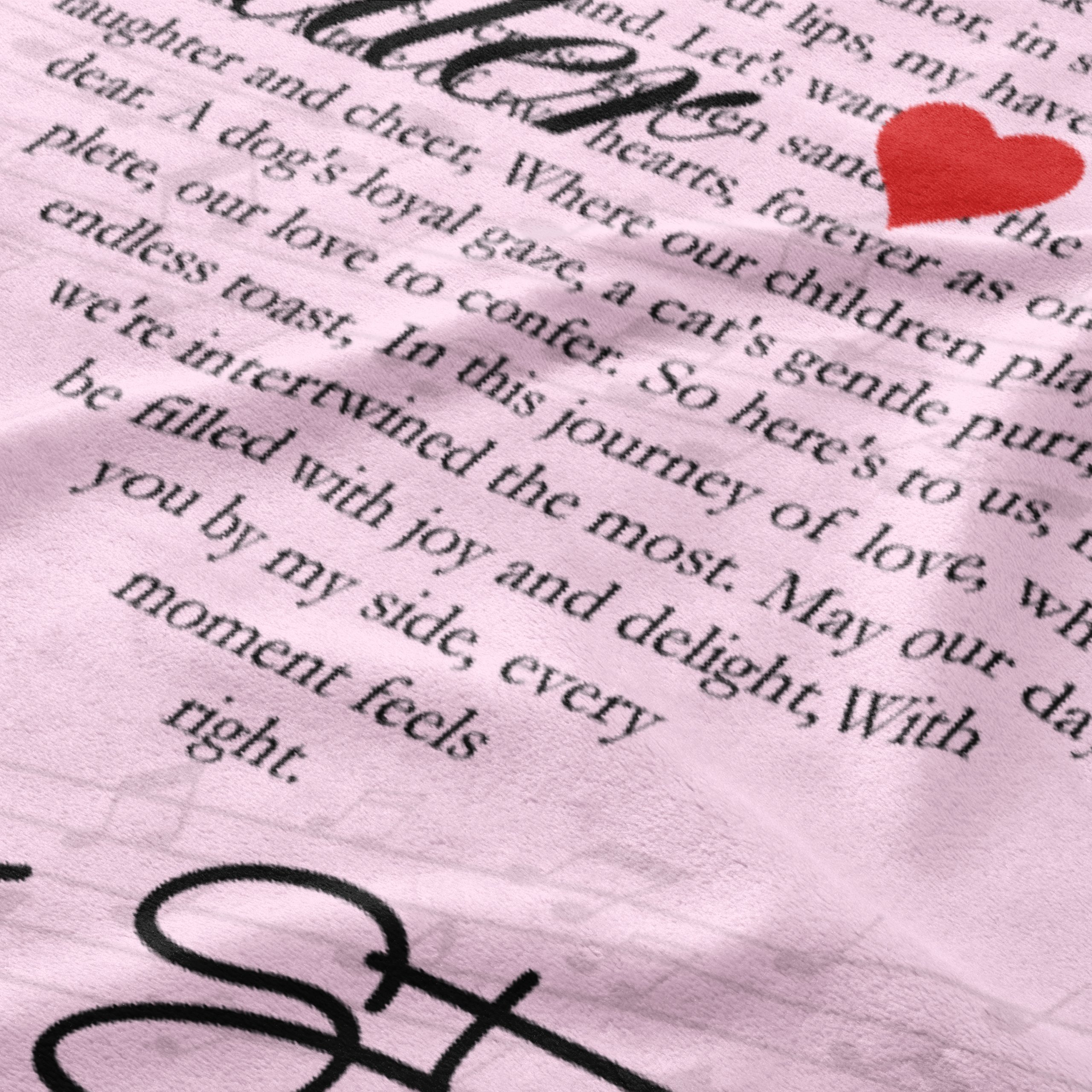 Wrap your loved one in the warmth of your favorite song with the Custom Heart Shaped Song Lyrics Custom Blanket. This customized blanket allows you to immortalize the lyrics in a heart shape, creating a unique and sentimental piece. Personalize it by choosing the song title, artist name, and background color. Made from high-quality and durable materials, the blanket is not only a cozy addition to your home but also a lasting reminder of your special moments together. This custom blanket is perfect for anniversaries, weddings, or as a heartwarming gift for your partner.
