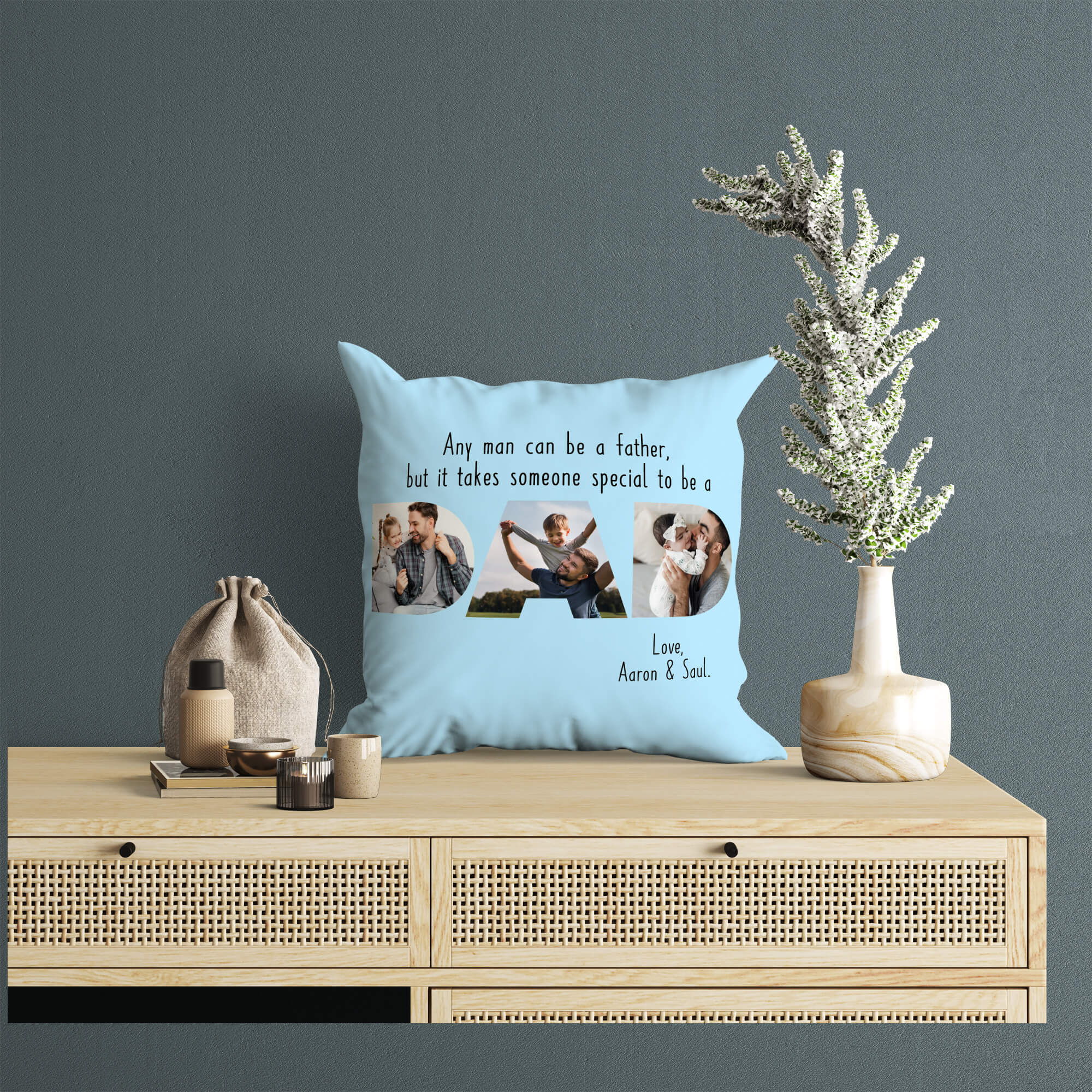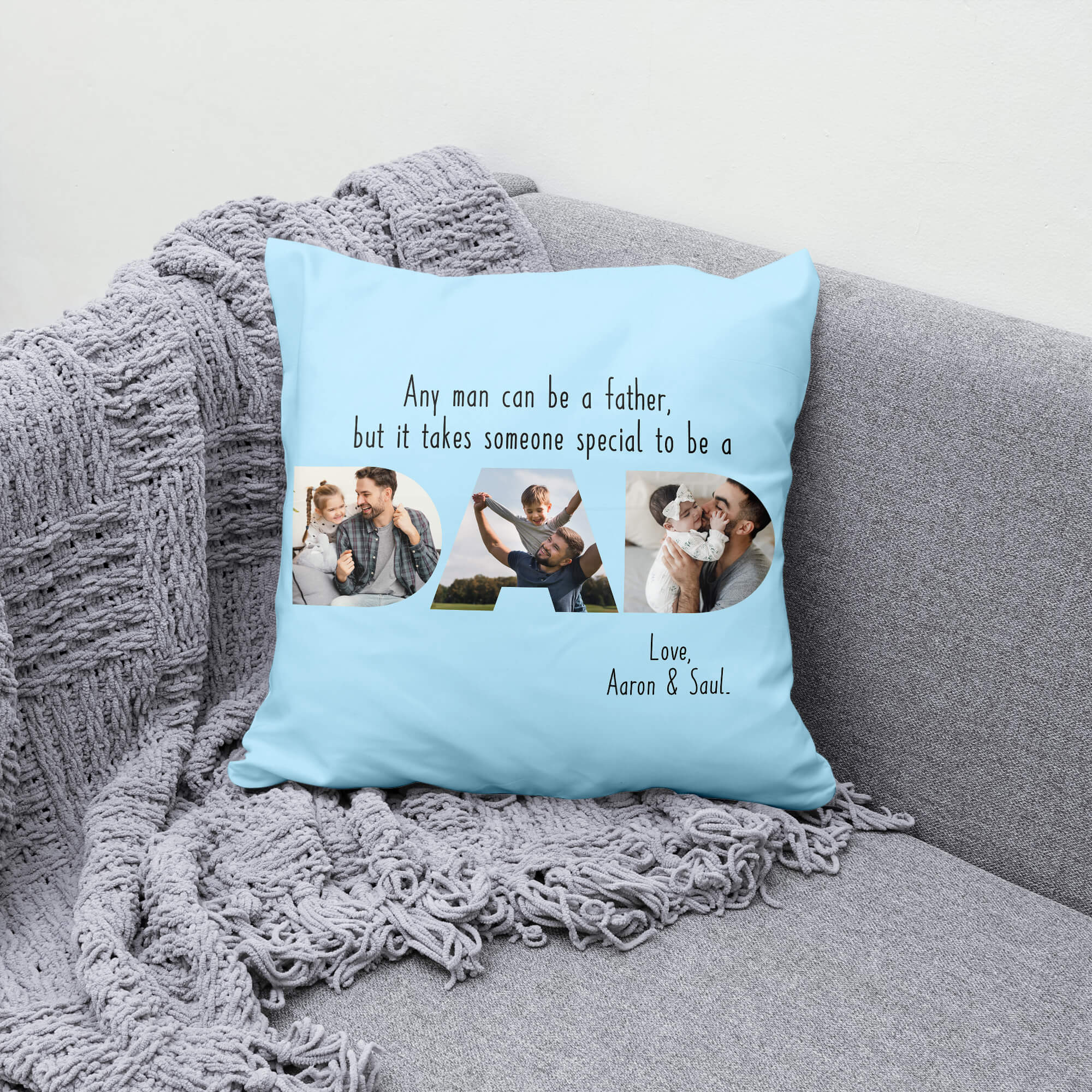 Bring warmth and joy to your dad’s resting space with the Customized Dad Photo Pillow. This personalized pillow seamlessly integrates images capturing precious moments, creating a unique and sentimental addition to your dad’s collection. The words “Dad,” “Daddy,” “Father,” or his name serve as the backdrop to your cherished family memories. Crafted from high-quality materials, this custom pillow is a cozy and enduring way to express your love. Surprise your father with a heartfelt gift that turns your family’s journey into a daily source of comfort.