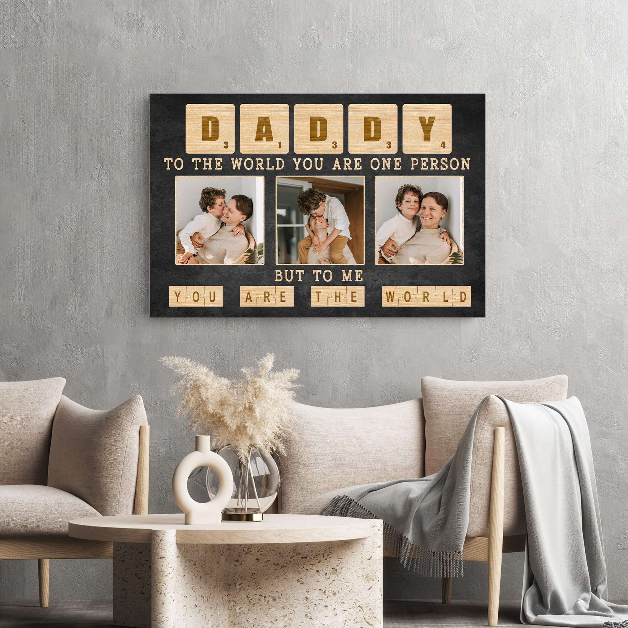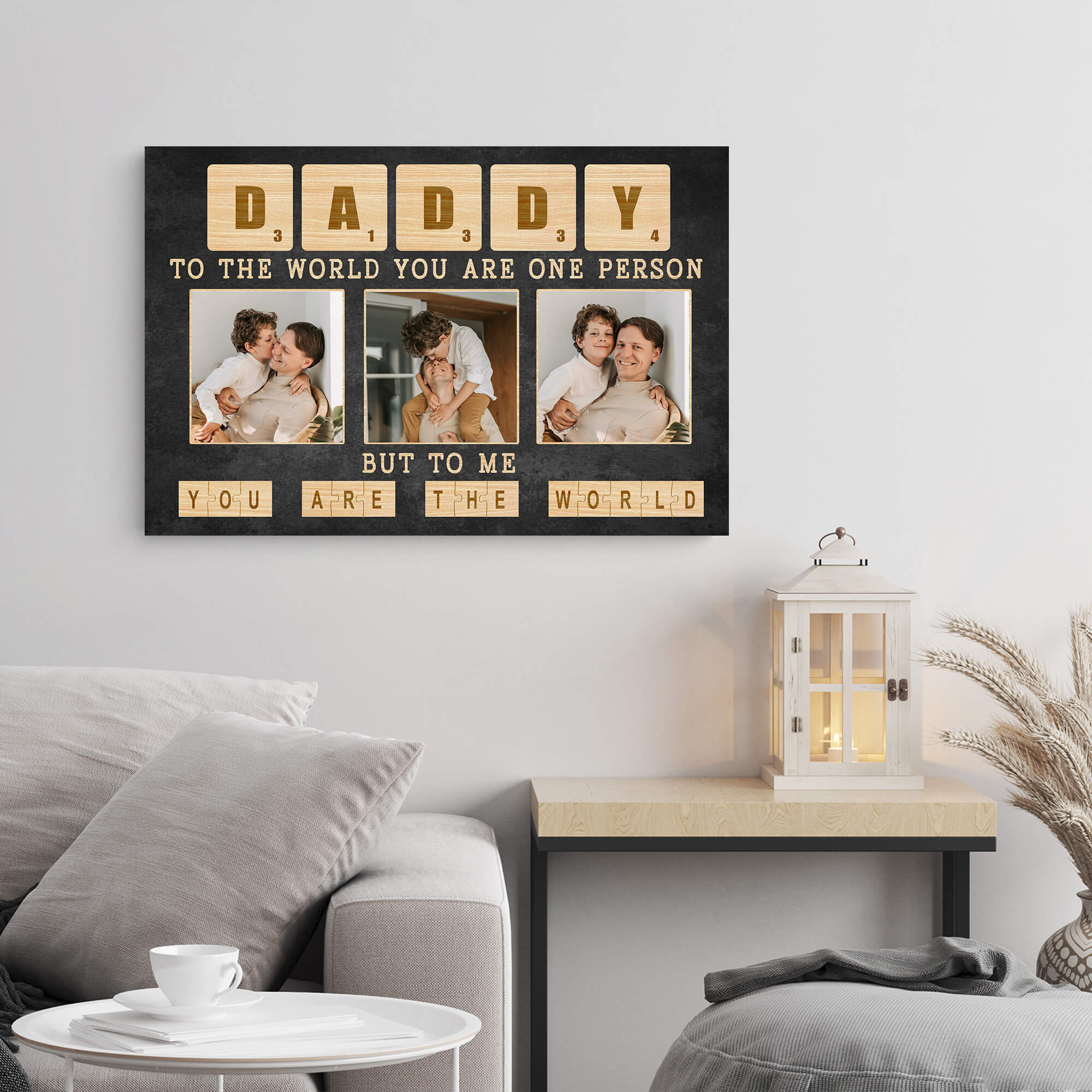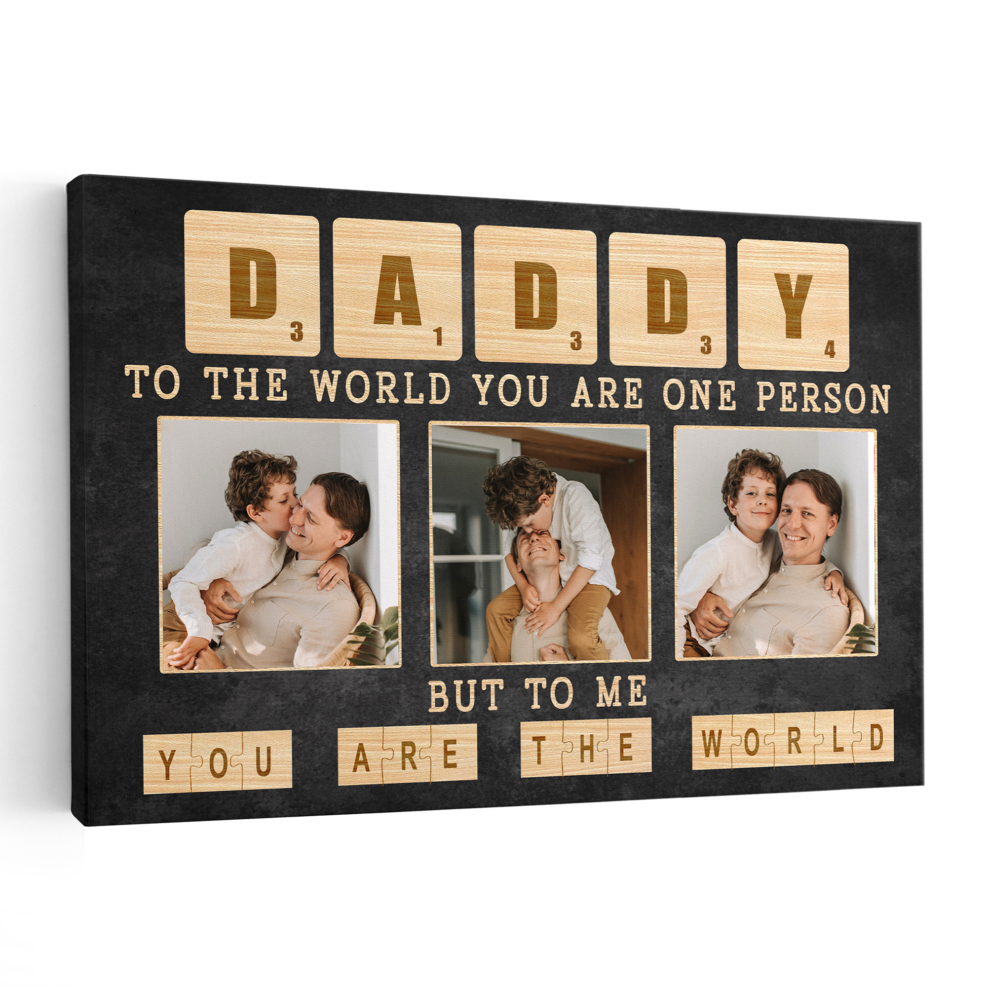 Immerse yourself in the beauty of memories with our Daddy To The World You Are One Person Canvas Photo Print. This exquisite creation transforms cherished moments into a timeless piece of art, capturing the essence of love and family at every glance. The canvas serves as a visual ode to the significant role mothers play in our lives, allowing you to express gratitude in a truly exceptional way.