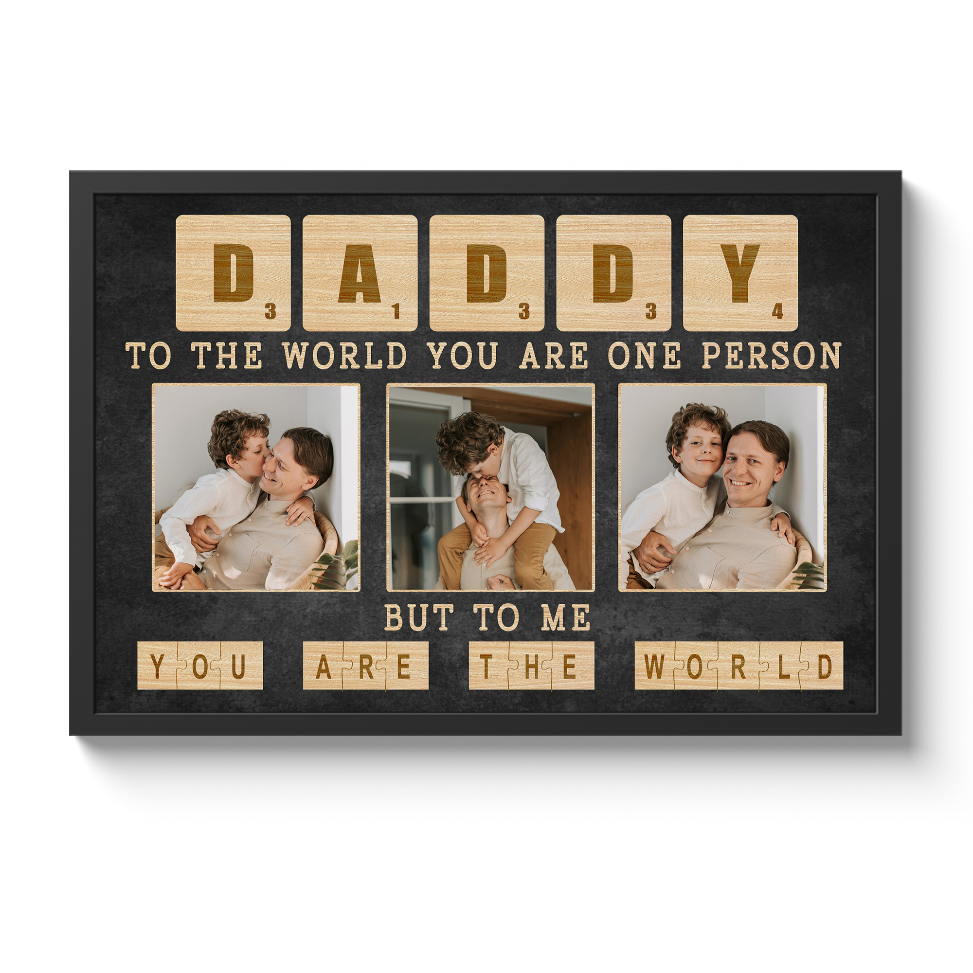 Elevate the warmth and sentimentality of your living space with our Daddy To The World You Are One Person Framed Print. This timeless masterpiece transforms your cherished memories into an exquisite visual display, celebrating the profound role of mothers in our lives. Crafted with precision and care, this framed print serves as a heartwarming ode to the enduring love and unity within a family.