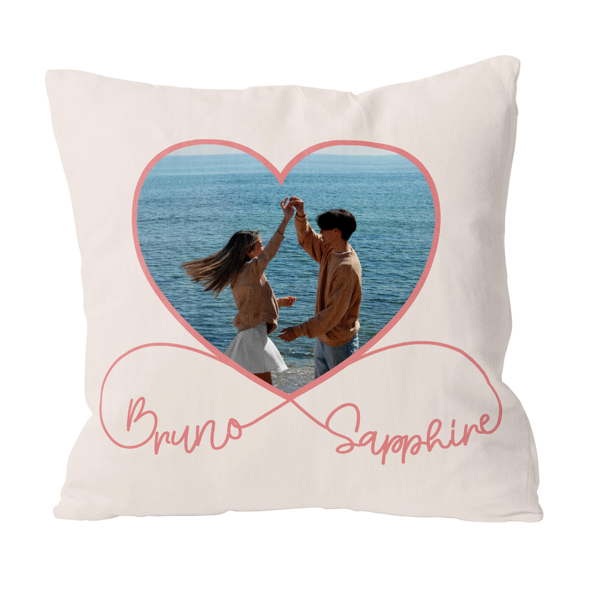 Embrace comfort and romance with our Infinite Love Custom Pillow. This personalized accent piece combines cozy comfort with heartfelt sentiment, featuring a high-quality print of you and your beloved encased within a soft, plush pillow. An intricately designed infinite heart symbol surrounds the image, capturing the essence of your everlasting bond. Add a personal touch by including your names in an elegant font, making this pillow a unique and meaningful keepsake. Whether adorning your bed or sofa, this custom pillow is a constant reminder of the infinite love that fills your heart, bringing warmth and joy to your home. Perfect for snuggling up with your sweetheart or as a thoughtful gift for anniversaries, weddings, or other special occasions, this Infinite Love Custom Pillow is sure to be cherished for years to come.
