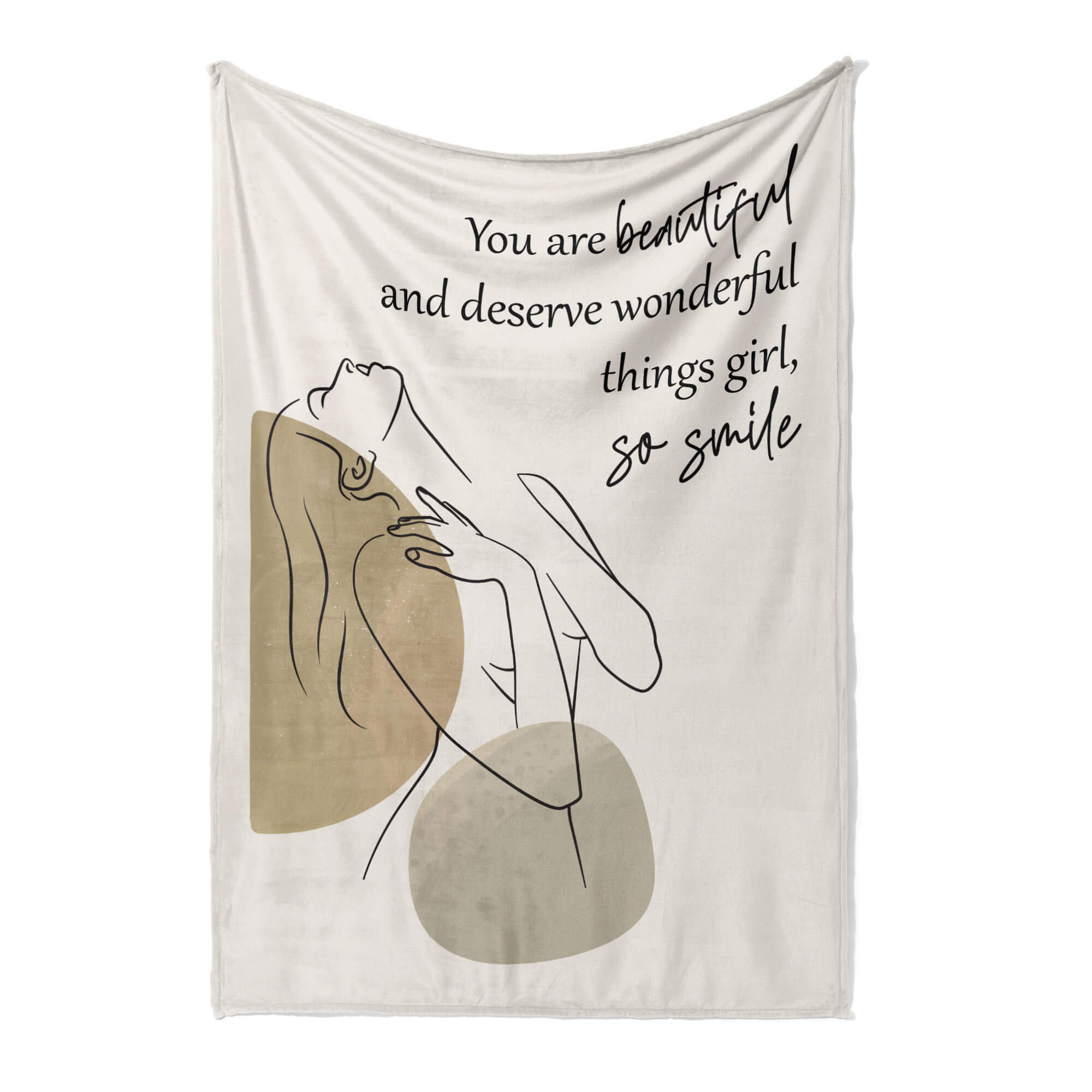 Give the gift of warmth and inspiration with our Lovely Custom Quote Blanket, a thoughtful and heartfelt tribute to the special girl in your life. Made from plush and high-quality material, this blanket features an elegant line drawing of a confident woman, gracefully portrayed against a soft and neutral background. Personalize the quote printed on the blanket to convey a meaningful message tailored specifically to your loved one. Whether used for snuggling up on chilly nights or as a decorative throw in her bedroom, this custom blanket becomes a cherished keepsake that she’ll treasure for years to come.