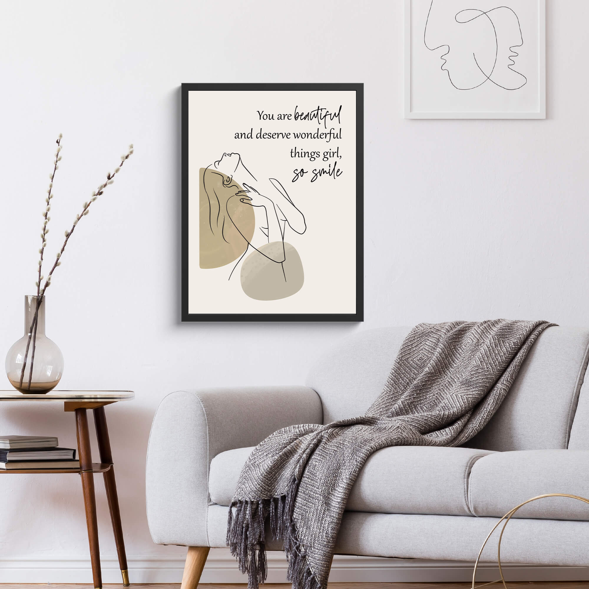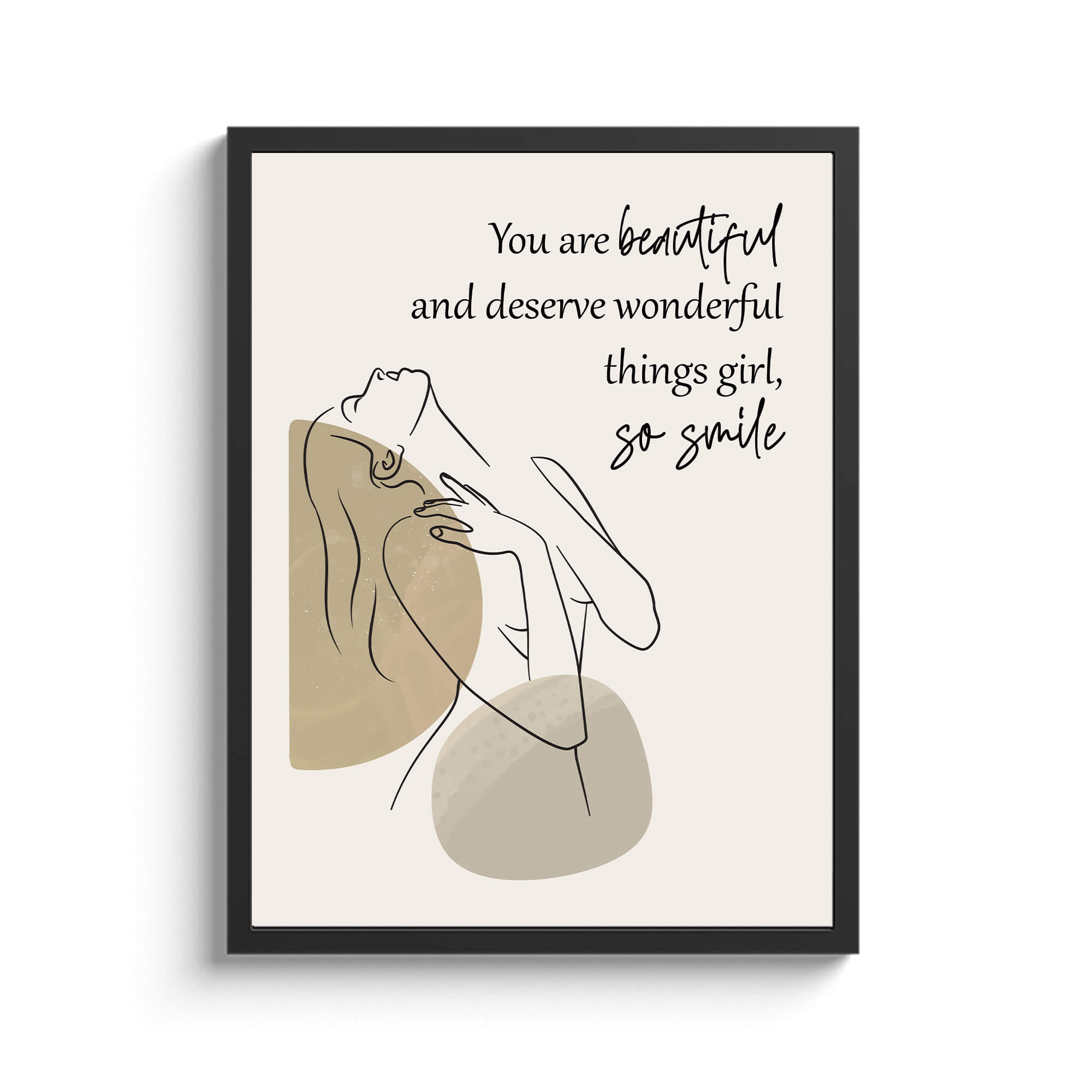 Surprise the special girl in your life with our Lovely Custom Quote Framed Print, a heartfelt gift designed to inspire and uplift. This beautifully crafted framed print features an elegant line drawing of a confident woman, gracefully portrayed against a soft and neutral background. With her head tilted back in a pose of unwavering confidence, she embodies the essence of femininity and inner strength. Personalize the quote printed on the artwork to convey a meaningful message tailored specifically to your loved one. Encased in a sleek frame, this custom framed print becomes a timeless keepsake that she’ll cherish for years to come.