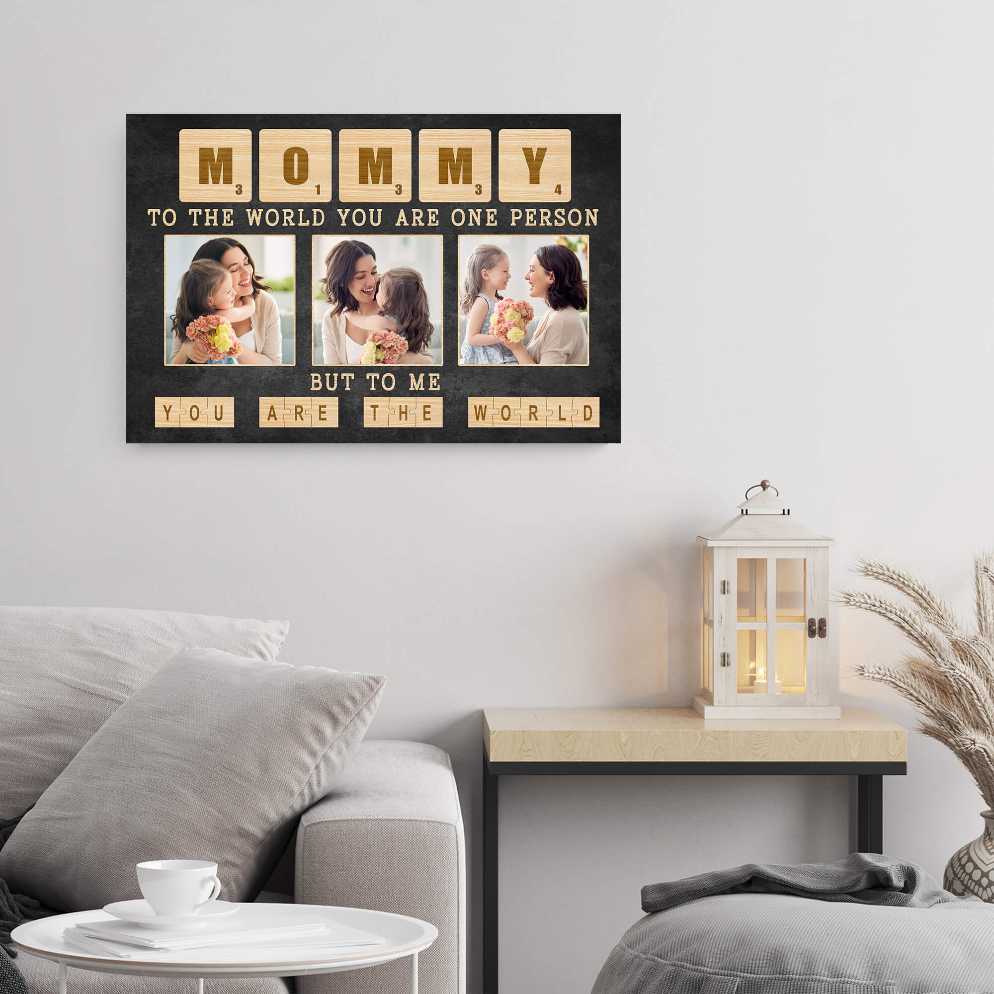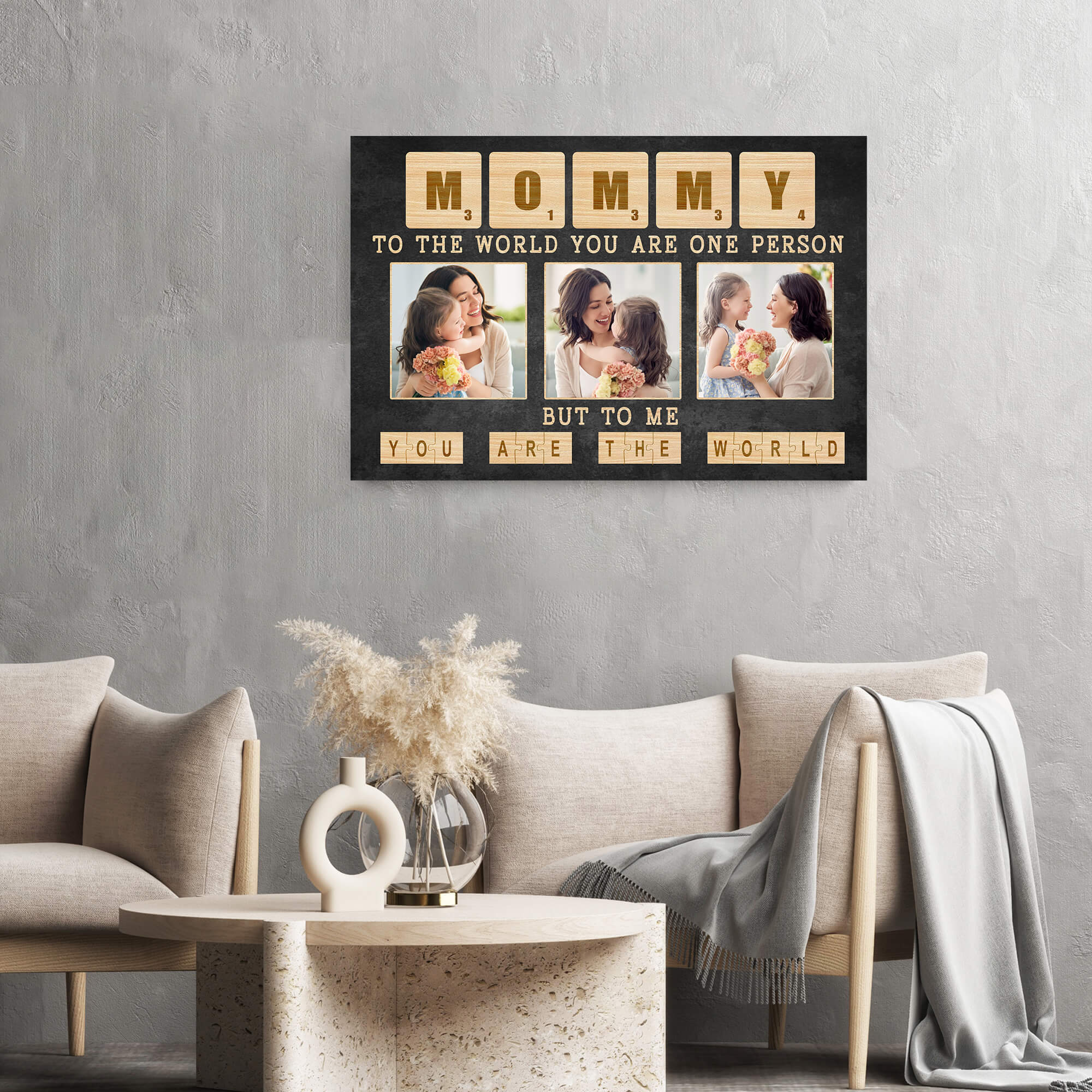 Immerse yourself in the beauty of memories with our “Mommy To The World You Are One Person” Canvas Photo Print. This exquisite creation transforms cherished moments into a timeless piece of art, capturing the essence of love and family at every glance. The canvas serves as a visual ode to the significant role mothers play in our lives, allowing you to express gratitude in a truly exceptional way.
