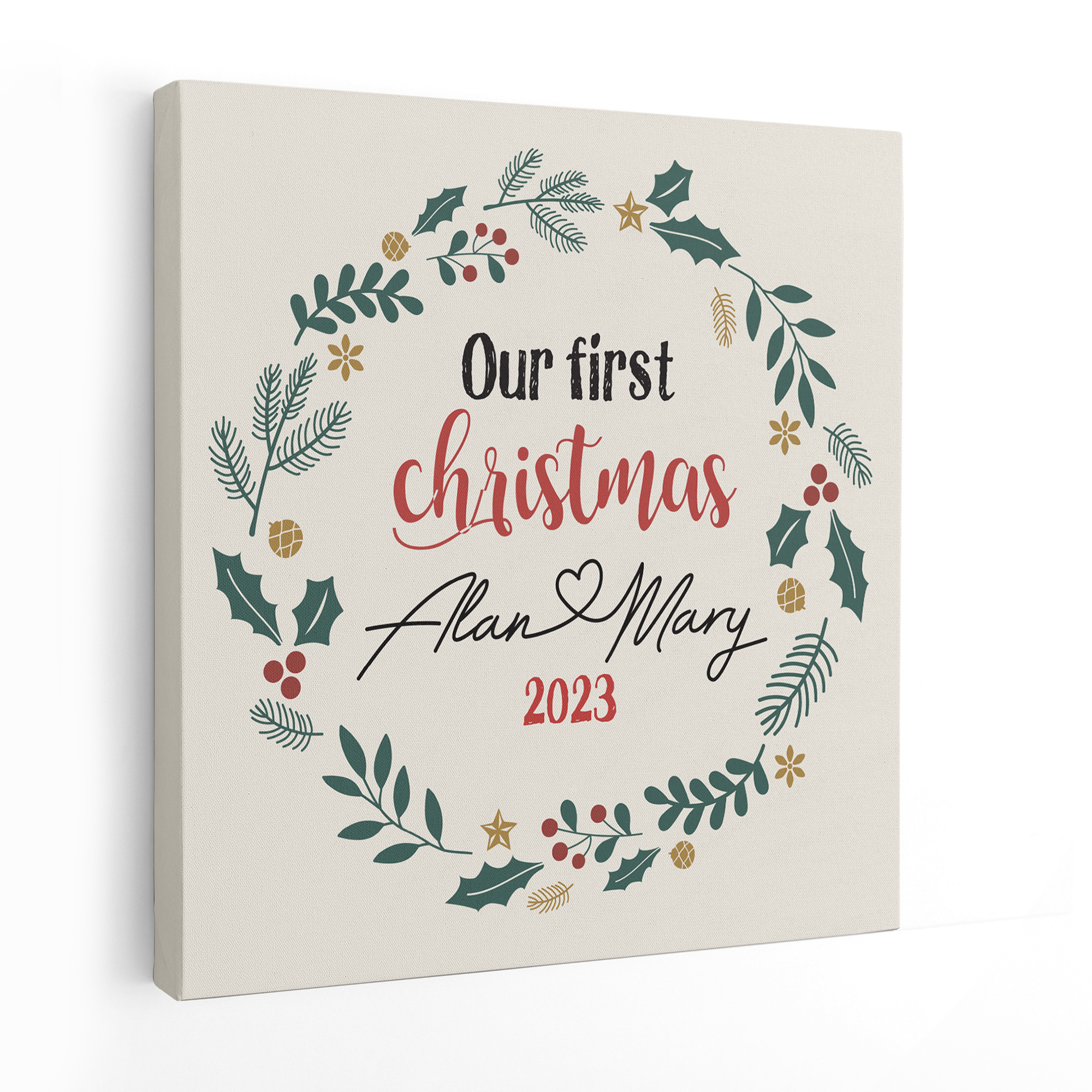 Commemorate the magic of your inaugural holiday season as a married couple with our exquisite Our First Christmas Newlywed Custom Canvas Print. This personalized masterpiece features the touching inscription “Our First Christmas,” coupled with your names, expertly printed on museum-quality canvas. The vibrant colors and intricate detailing capture the warmth of your love, making this custom canvas print a timeless piece of art that will adorn your walls and serve as a cherished reminder of your first Christmas together.