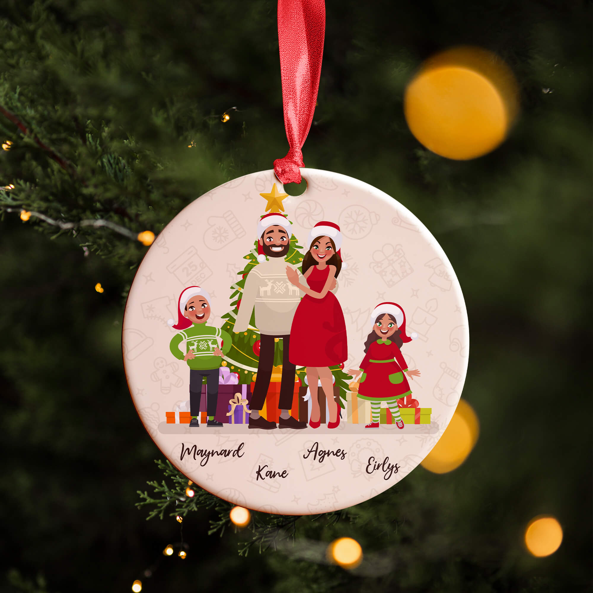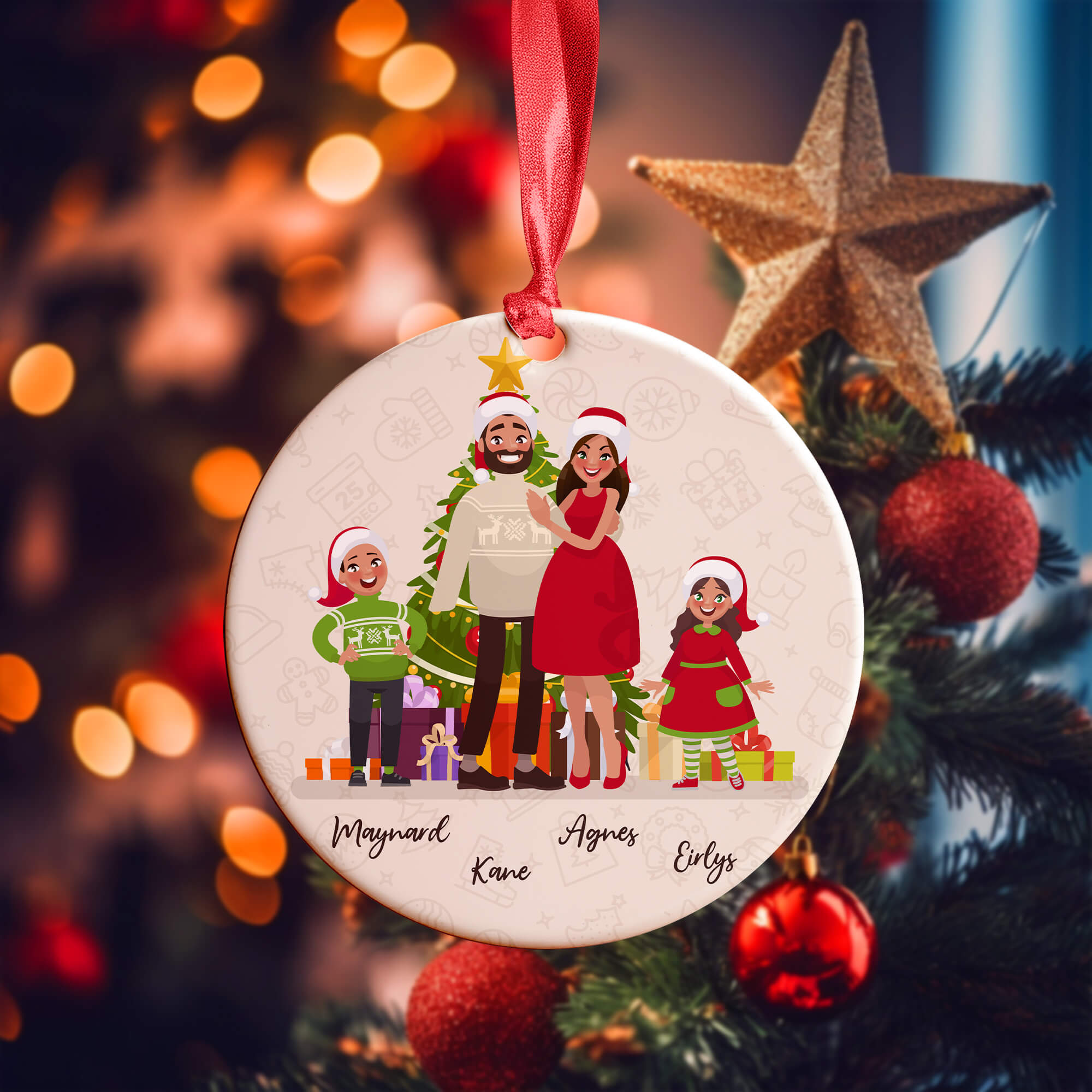 Whether adorning your tree or gifting it to another family, let this personalized Christmas ornament with animated family members become a magical tradition, spreading festive cheer and creating lasting memories that will be treasured for years to come.