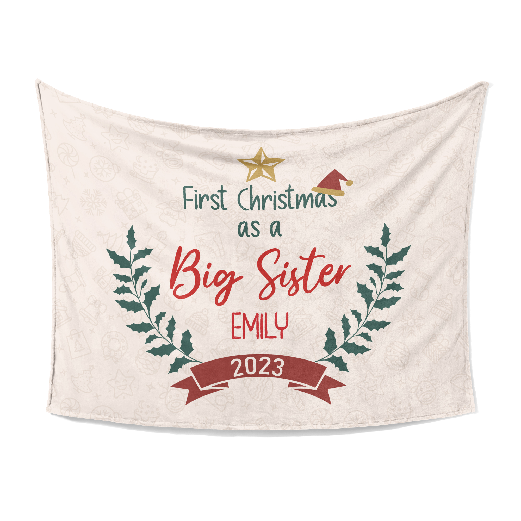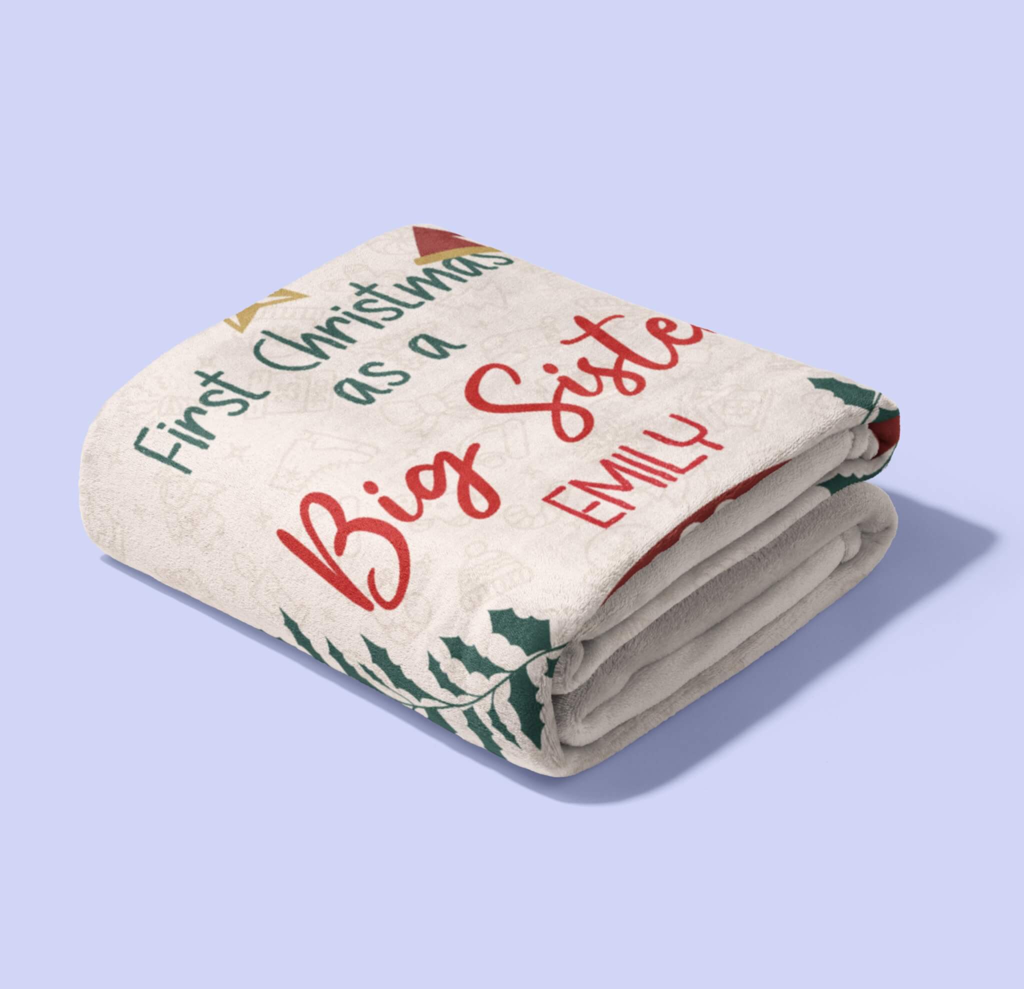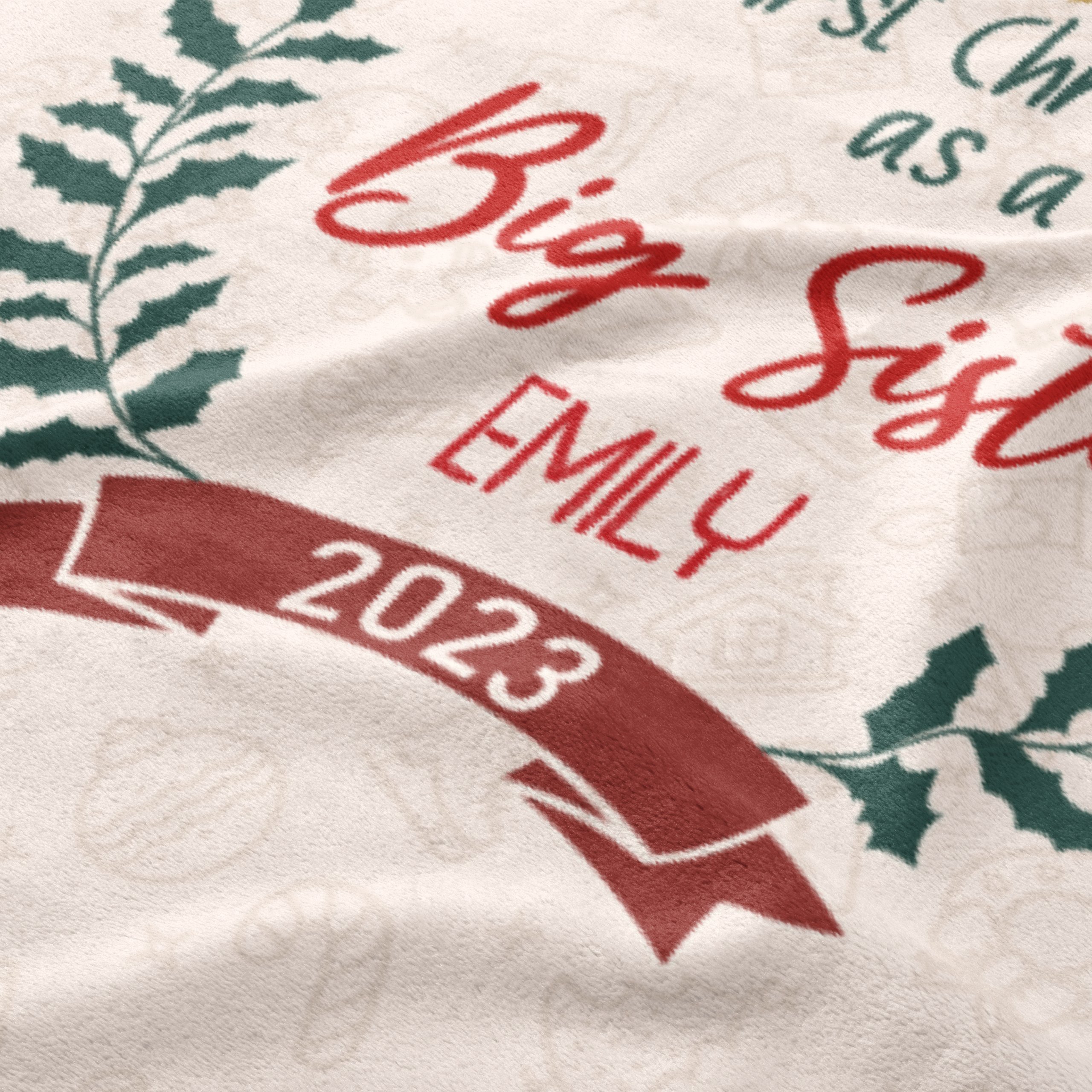 Crafted with care, this custom blanket allows you to personalize the girl’s name and the year of the first Christmas. Made of high-quality material, it ensures both comfort and durability. Whether draped over your shoulders during chilly evenings or displayed as a decorative throw, this custom blanket becomes a tangible representation of the warmth and joy of embracing the role of a big sister during the holiday season.