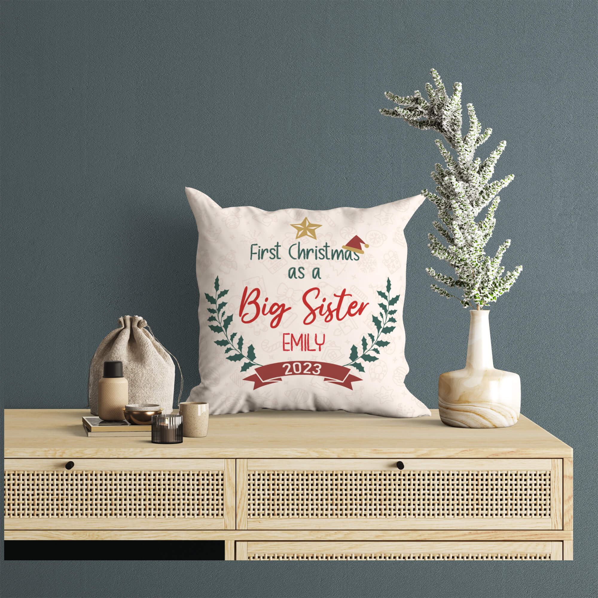 Crafted for both comfort and style, this custom pillow allows you to customize the girl’s name and the year of the first Christmas. It becomes more than just a soft accessory; it’s a tangible reminder of the joy and warmth of embracing the role of a big sister during the holiday season.