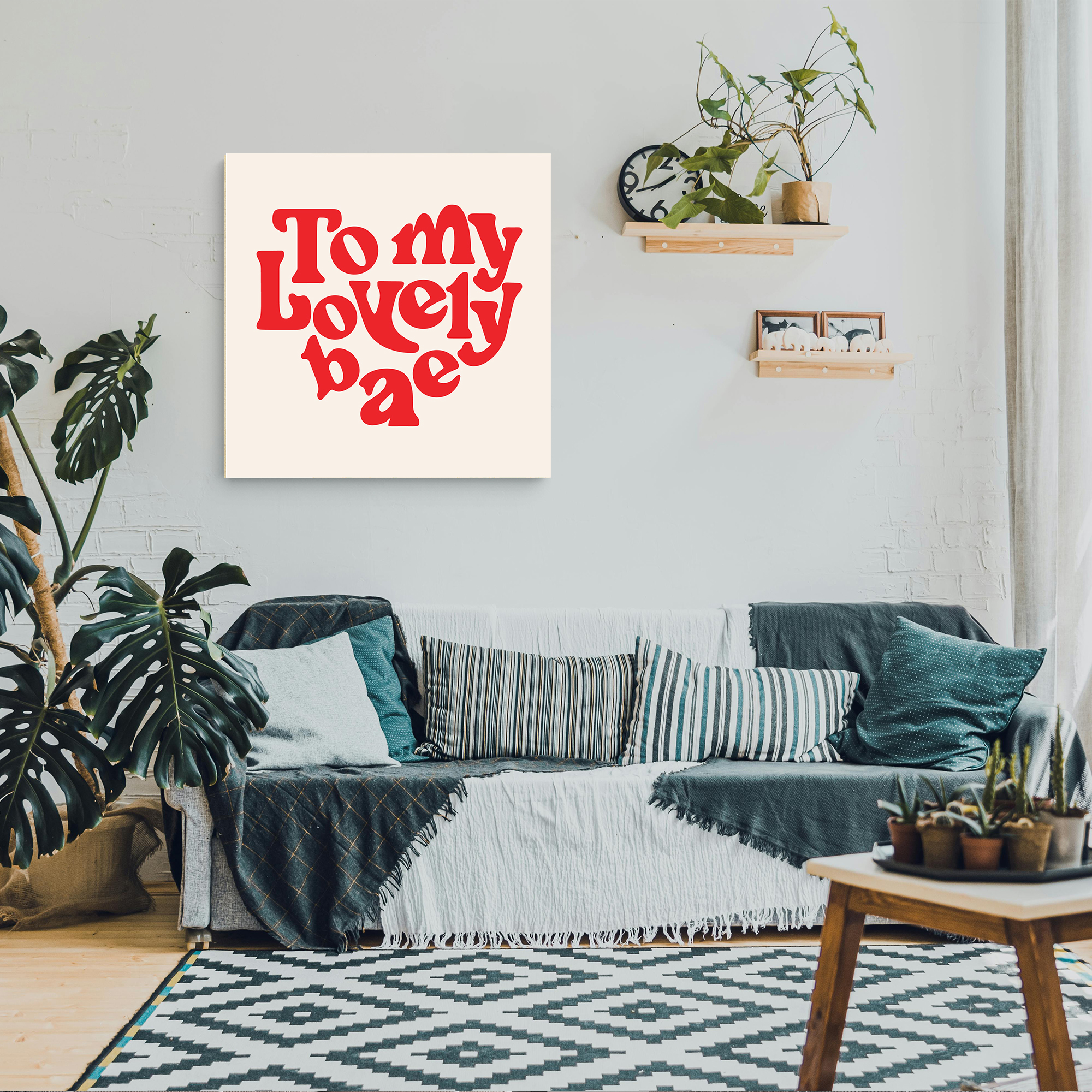 Personalized Love Message To My Lovely Bae Canvas Print is a beautiful square canvas that radiates romance and sentiment. The clean, white background serves as the perfect canvas for the heartfelt message, “To my Lovely bae,” which is elegantly crafted in bold, striking red letters. The artistic arrangement of the text features varying font sizes, skillfully emphasizing certain words to create an aesthetic heart.